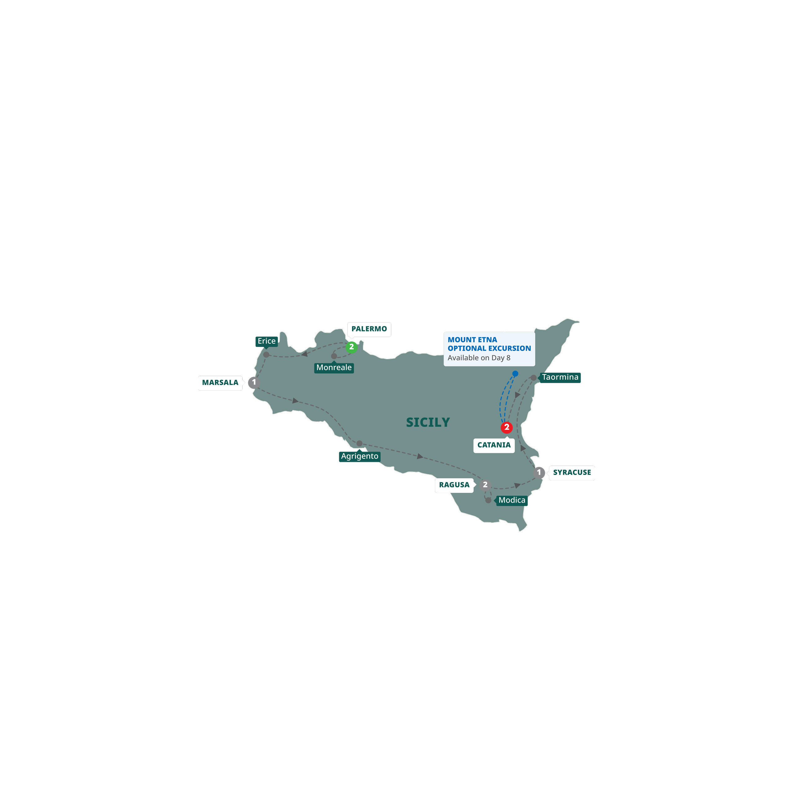 - Explore Palermo, Monreale, Valley of the Temples, Ragusa, Syracuse and Taormina