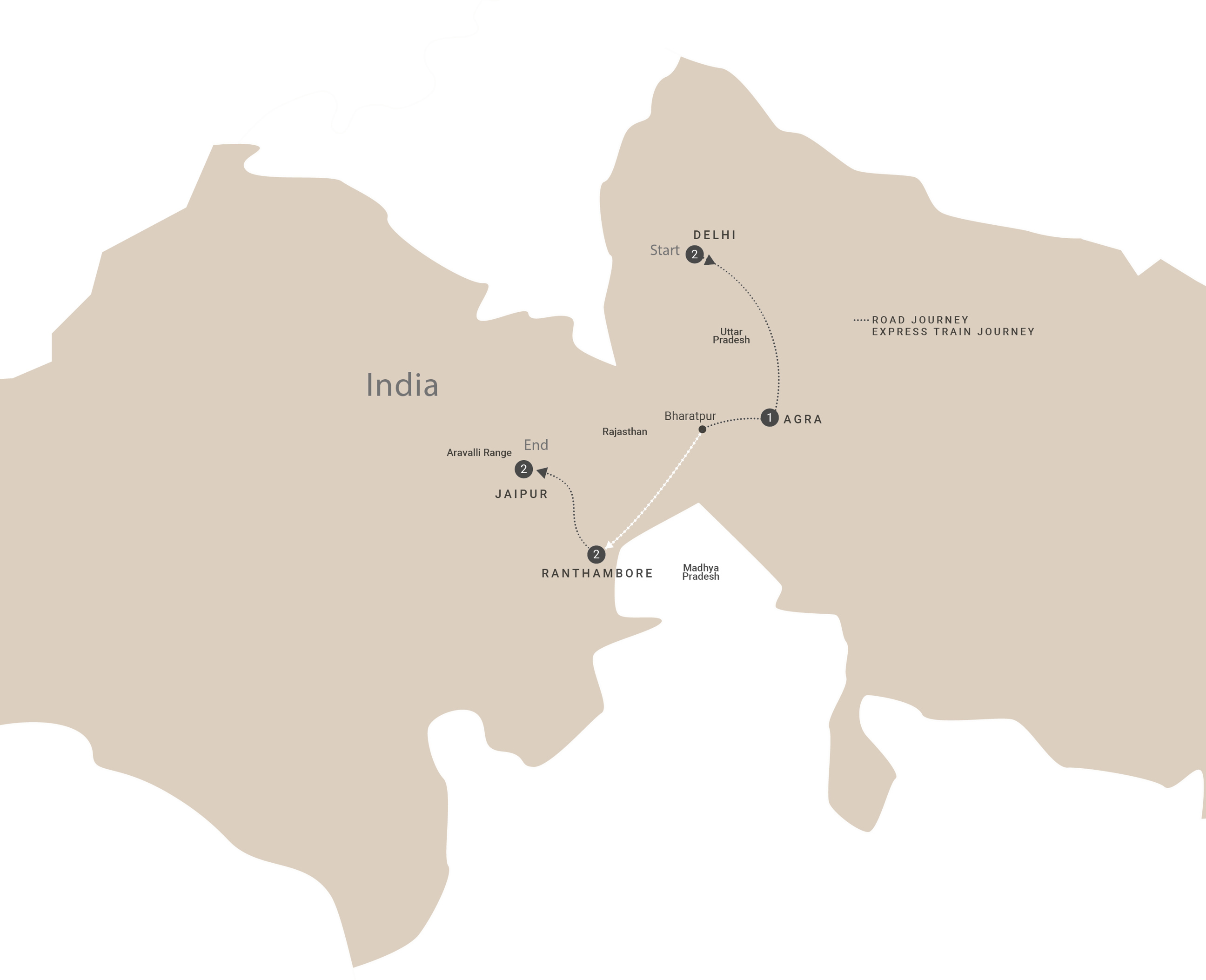 - Ranthambore: Sit back and relax on the express train from Bharatpur to Ranthambore. Enjoy the scenic vistas of northern India as you are transported door-to-door in just a few hours. Experience the quickest way to travel in India, as small villages and plantations whizz by.