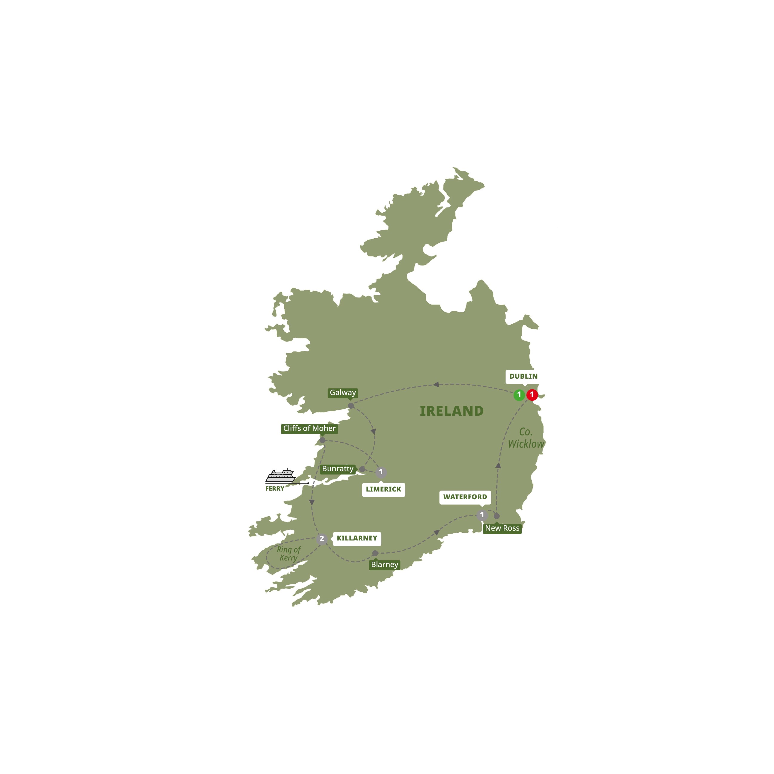 A roundtrip from Dublin featuring all the Ireland highlights including Waterford Crystal, your newfound 'gift of the gab' at Blarney Castle and the irresistible Ring of Kerry. You’ll also learn about the devastating Irish famine and peer over the edge at the Cliffs of Moher.