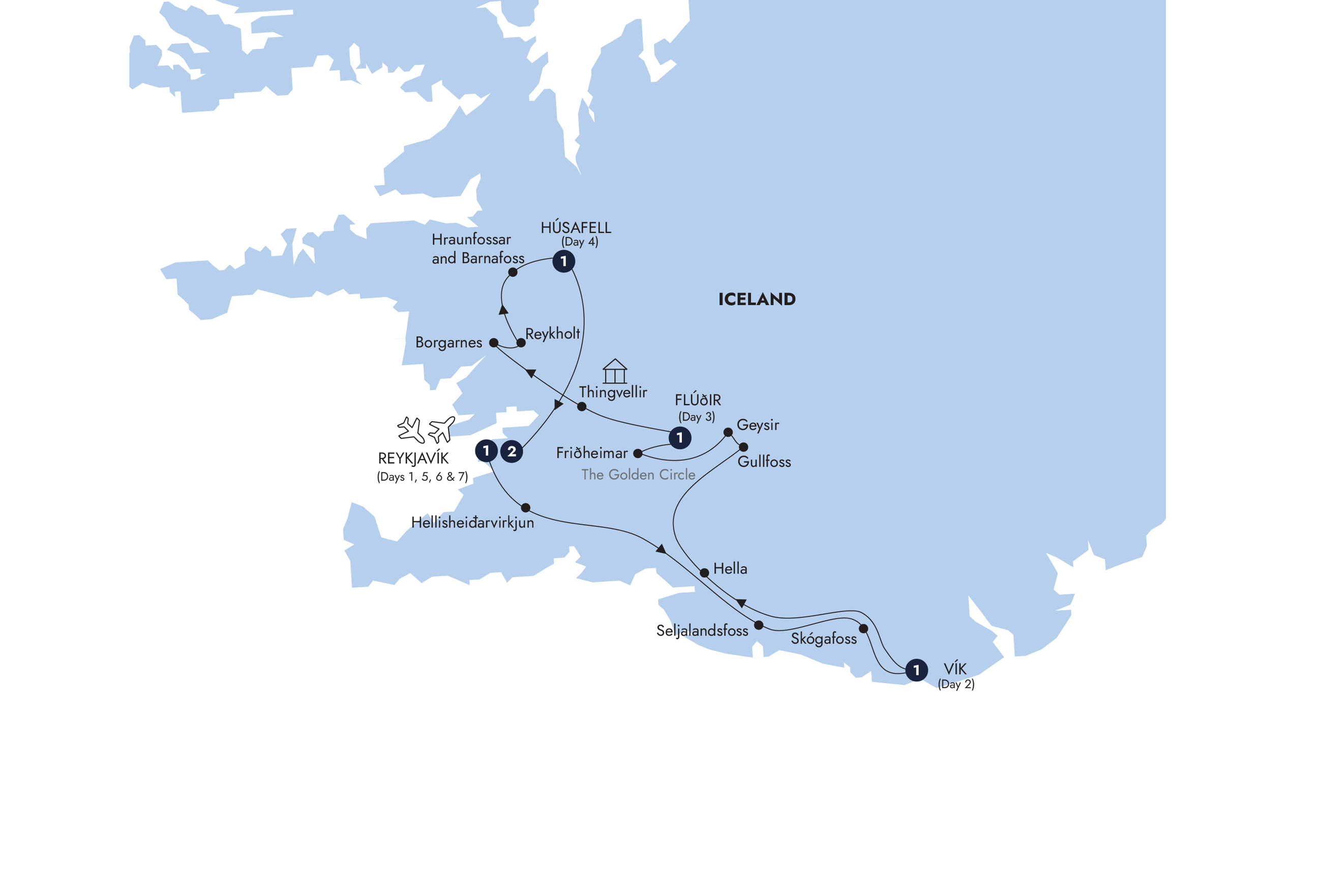 Your Icelandic adventure comes to an end, with a transfer to Reykjavík's Keflavík Airport.