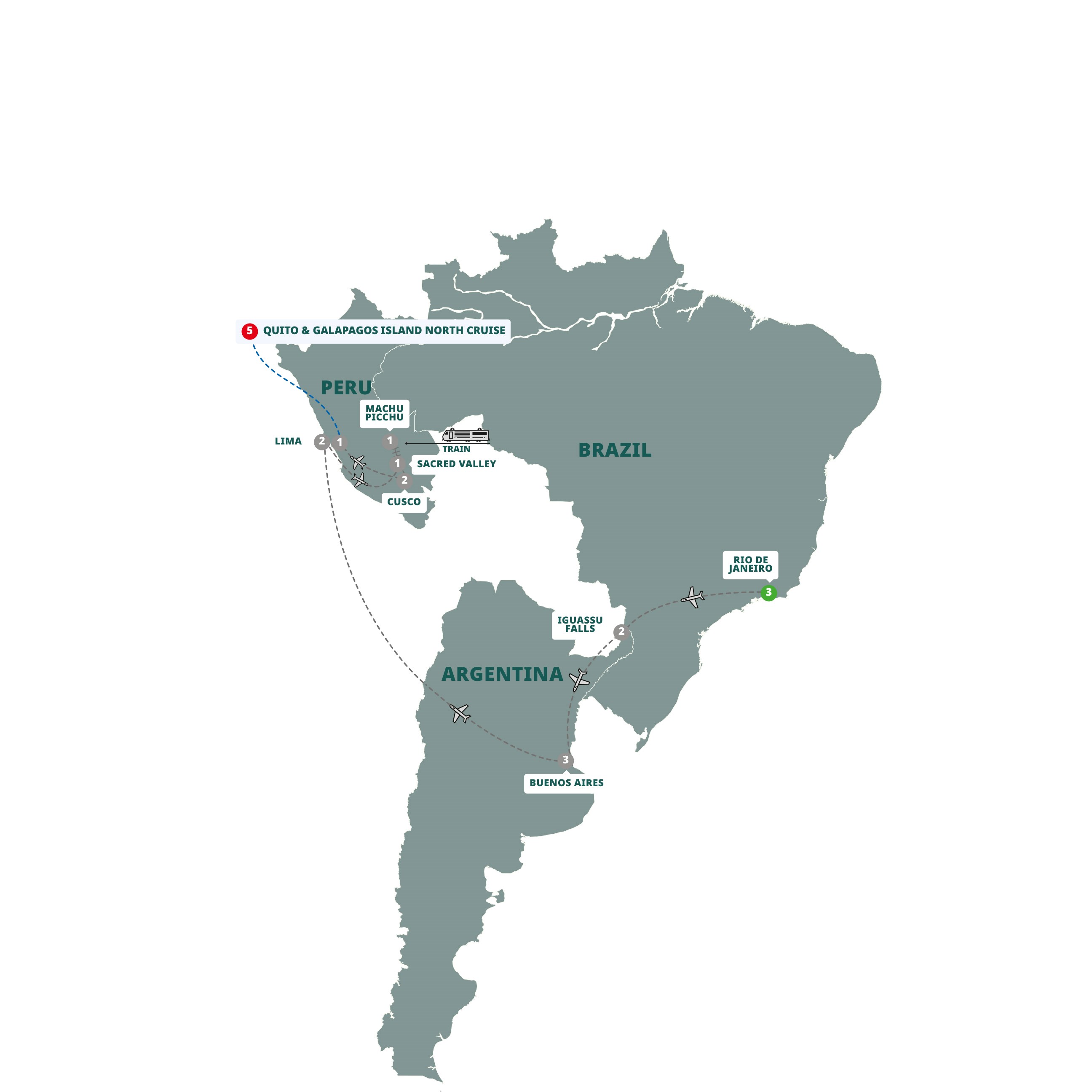 You’ll feel just like a local on this South American tour as you go from Rio's gorgeous beaches to vibrant capitals, national parks, and the Inca heart of Peru, learn to samba and mix the perfect caipirinha. Then let loose your inner explorer meeting giant tortoises, turtles and sea lions, cruising the Galapagos Islands.Please note that the flight between Lima and Quito is not included.
