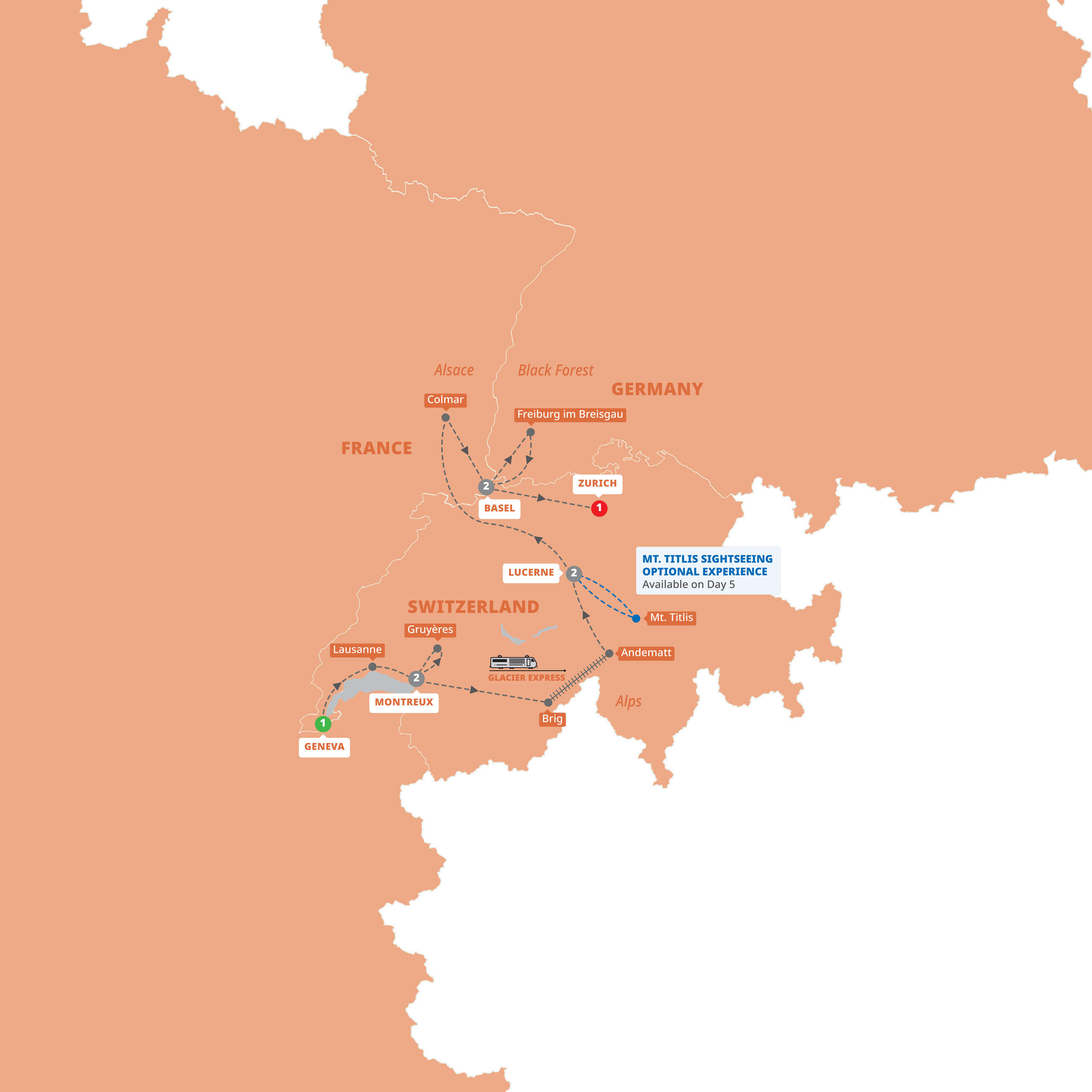 - Discover Geneva, Lausanne, Montreux, Gruyères, Lucerne, Colmar, Basel, Freiburg and Zürich