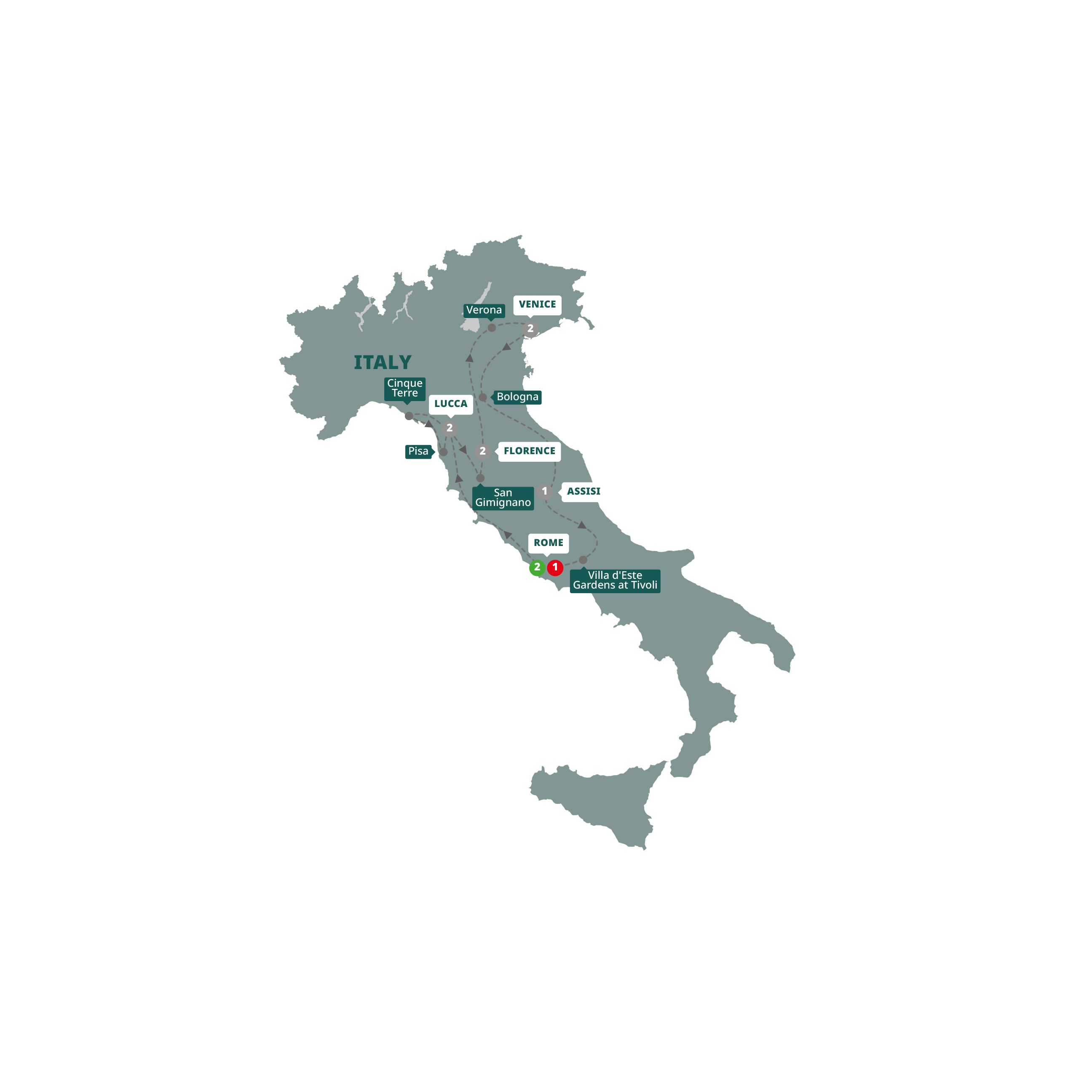 - Discover Pisa, San Gimignano, Verona, Venice and Bologna